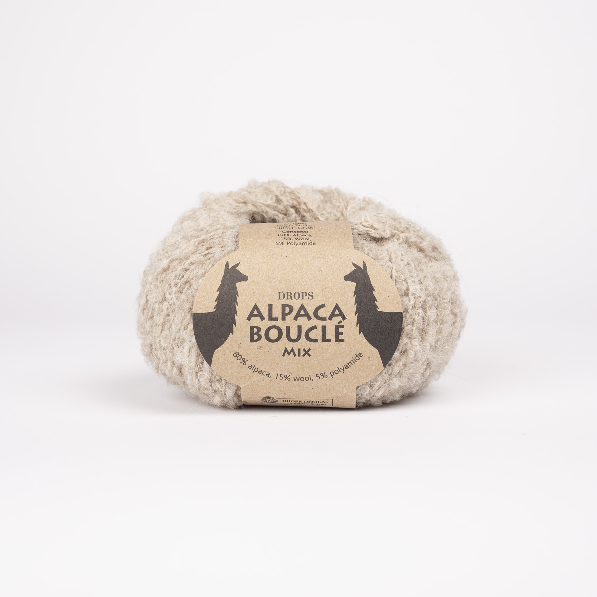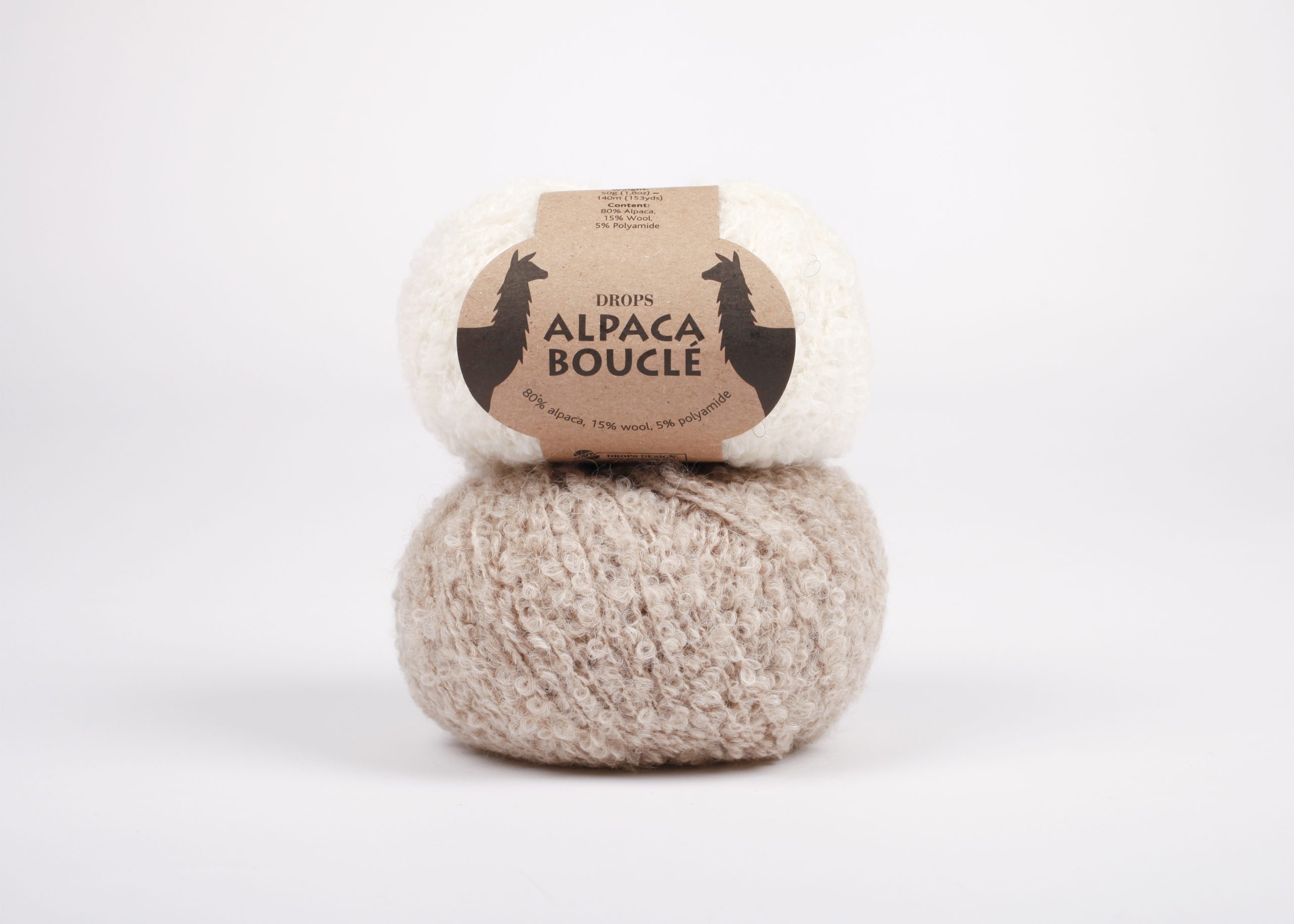 « Bouclé » é uma palavra francesa que se refere ao número de pequenos “caracóis” em pura alpaca que confere à lã a sua textura tão característica e que realça a suavidade das fibras. As peças feitas com o DROPS Alpaca Bouclé são leves e muito fofas.