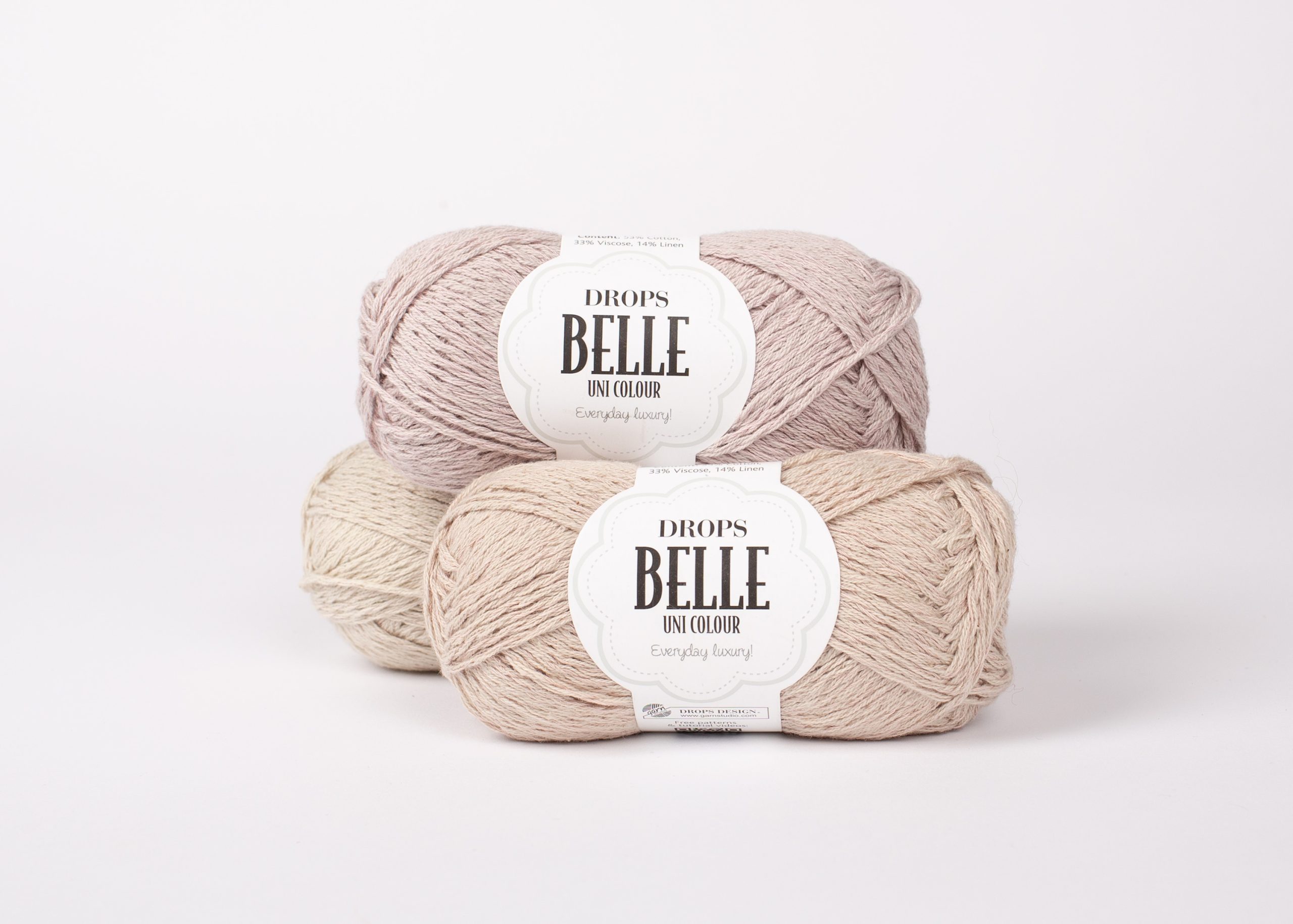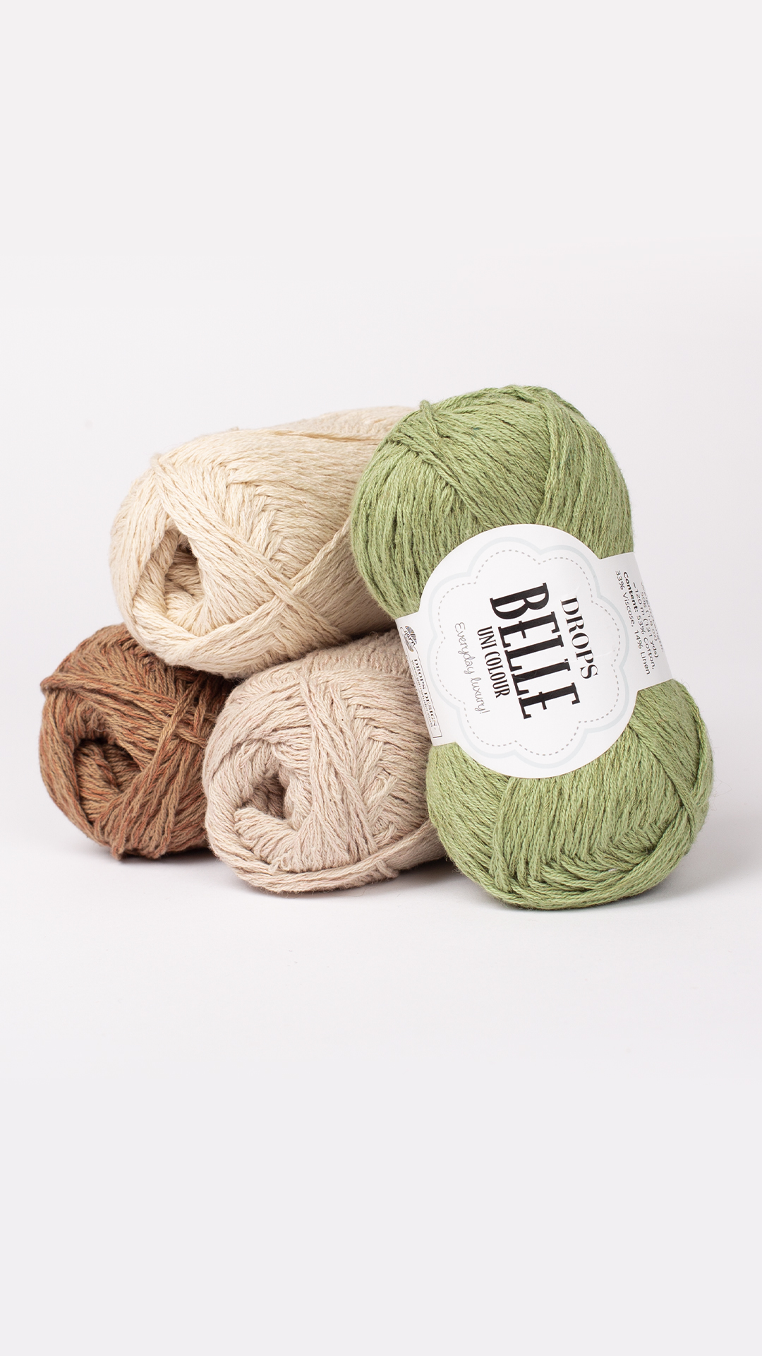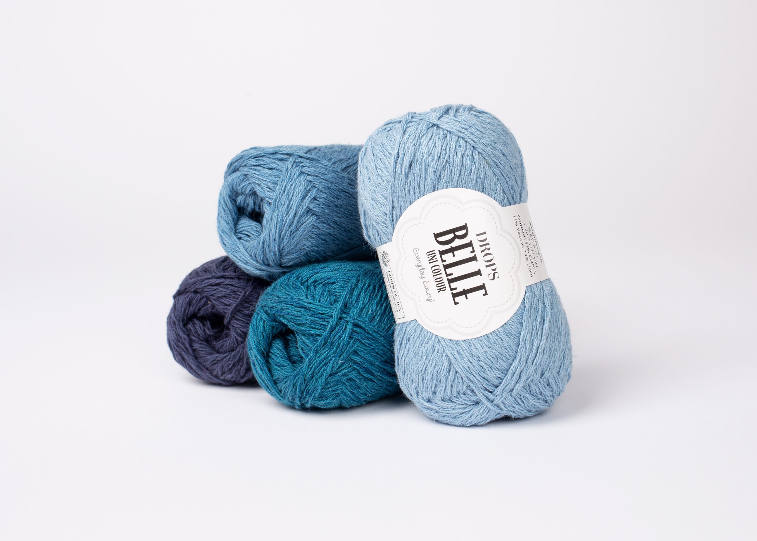 O Drops Belle, da marca Drops design, é feito de uma magnífica combinação de algodão, viscose e linho, o DROPS Belle é um fio para todo o ano que deixa a pele respirar, tem uma delicada textura e brilho, e é ideal para usar em contacto directo com a pele!