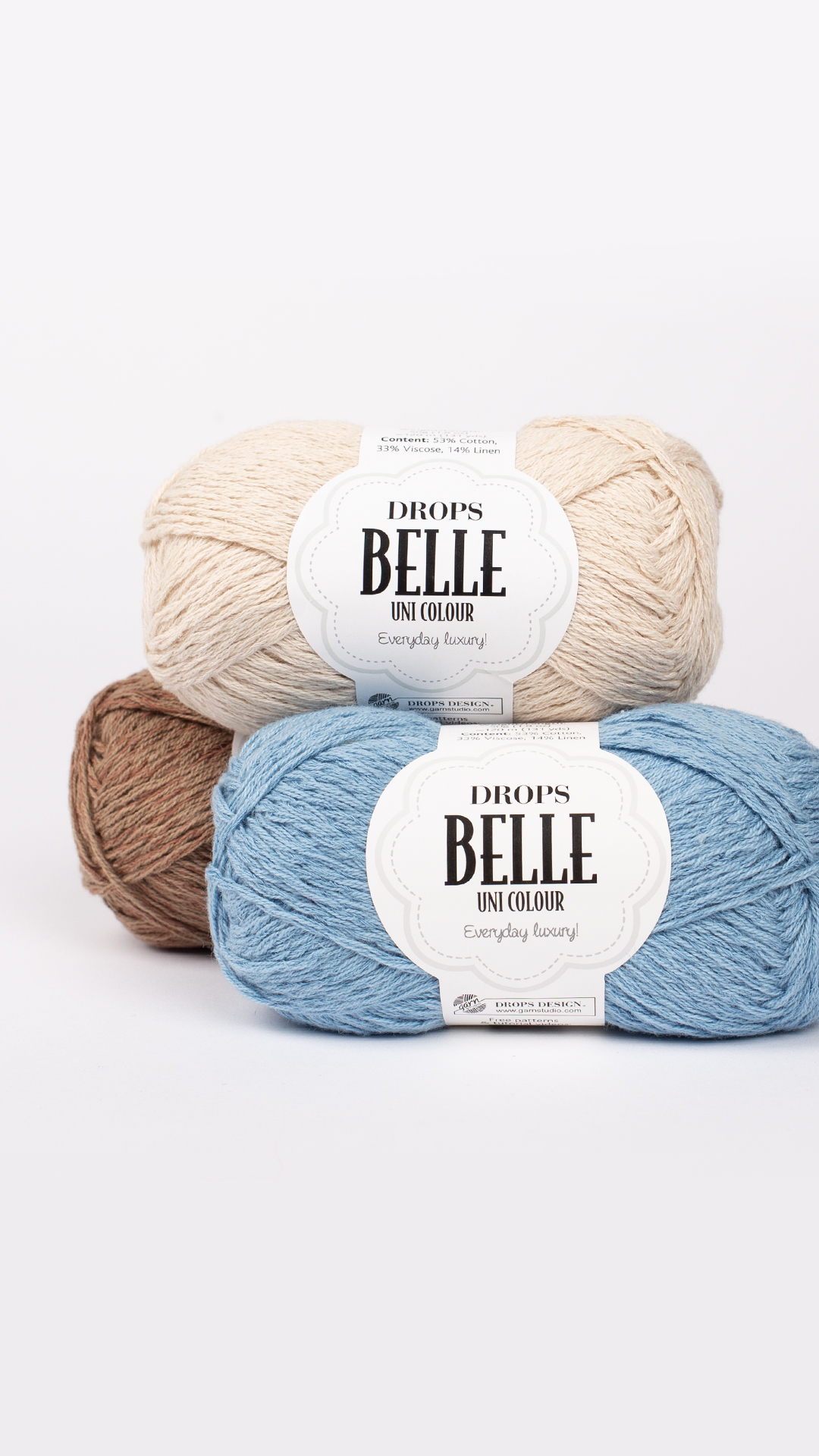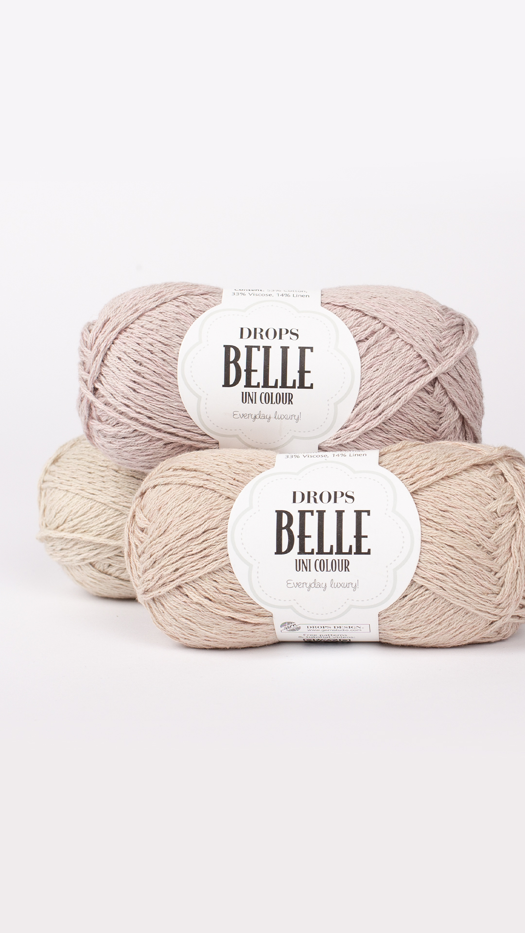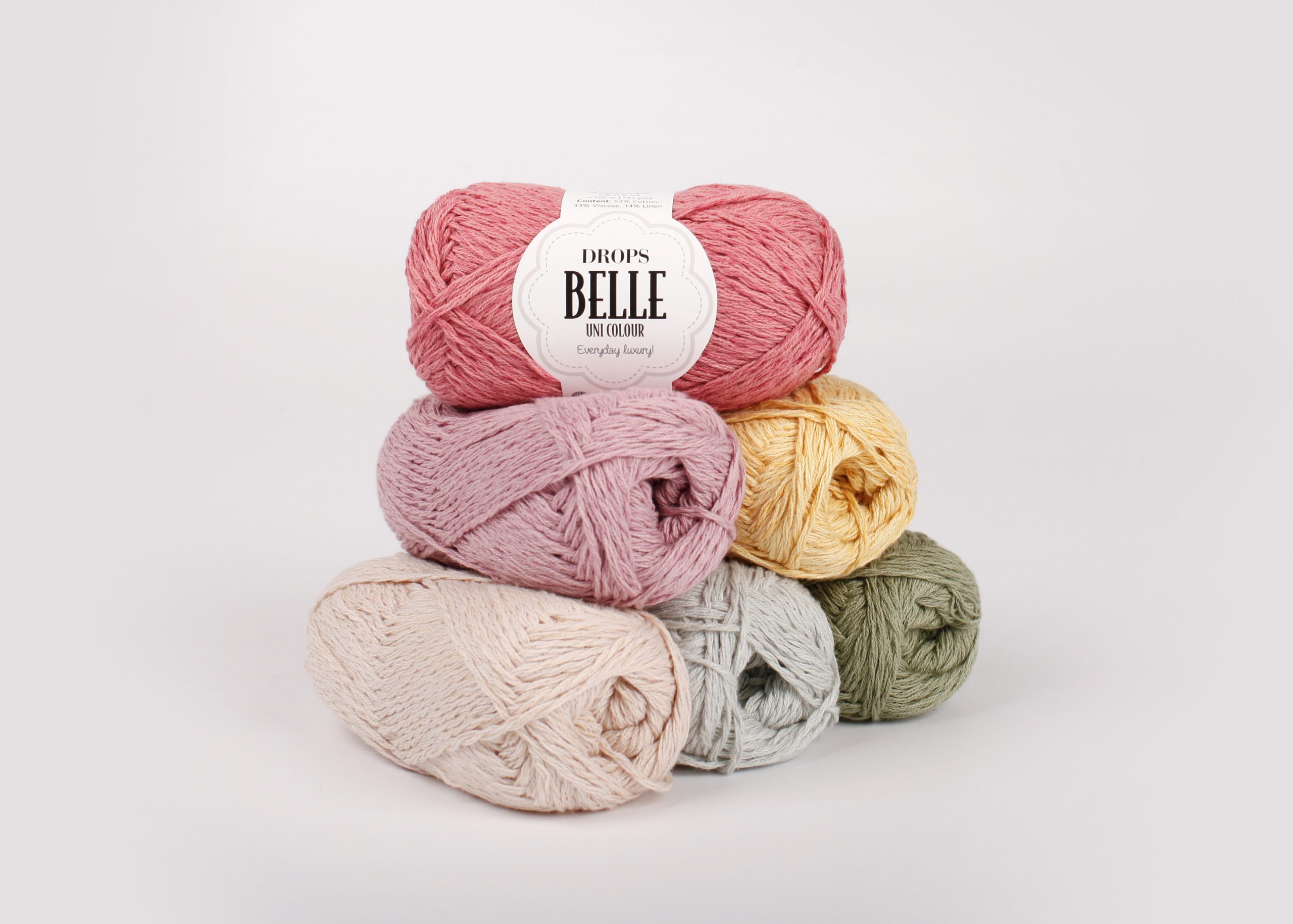 O Drops Belle, da marca Drops design, é feito de uma magnífica combinação de algodão, viscose e linho, o DROPS Belle é um fio para todo o ano que deixa a pele respirar, tem uma delicada textura e brilho, e é ideal para usar em contacto directo com a pele!