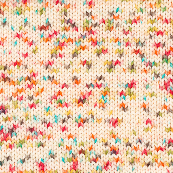 As cores print do DROPS Fiesta têm um aspecto de tingimento à mão, com ligeiras variações nos padrões e nuances, o que significa que não há dois novelos iguais. Estas variações não são defeitos mas uma característica resultante da técnica de tingimento usada neste fio.