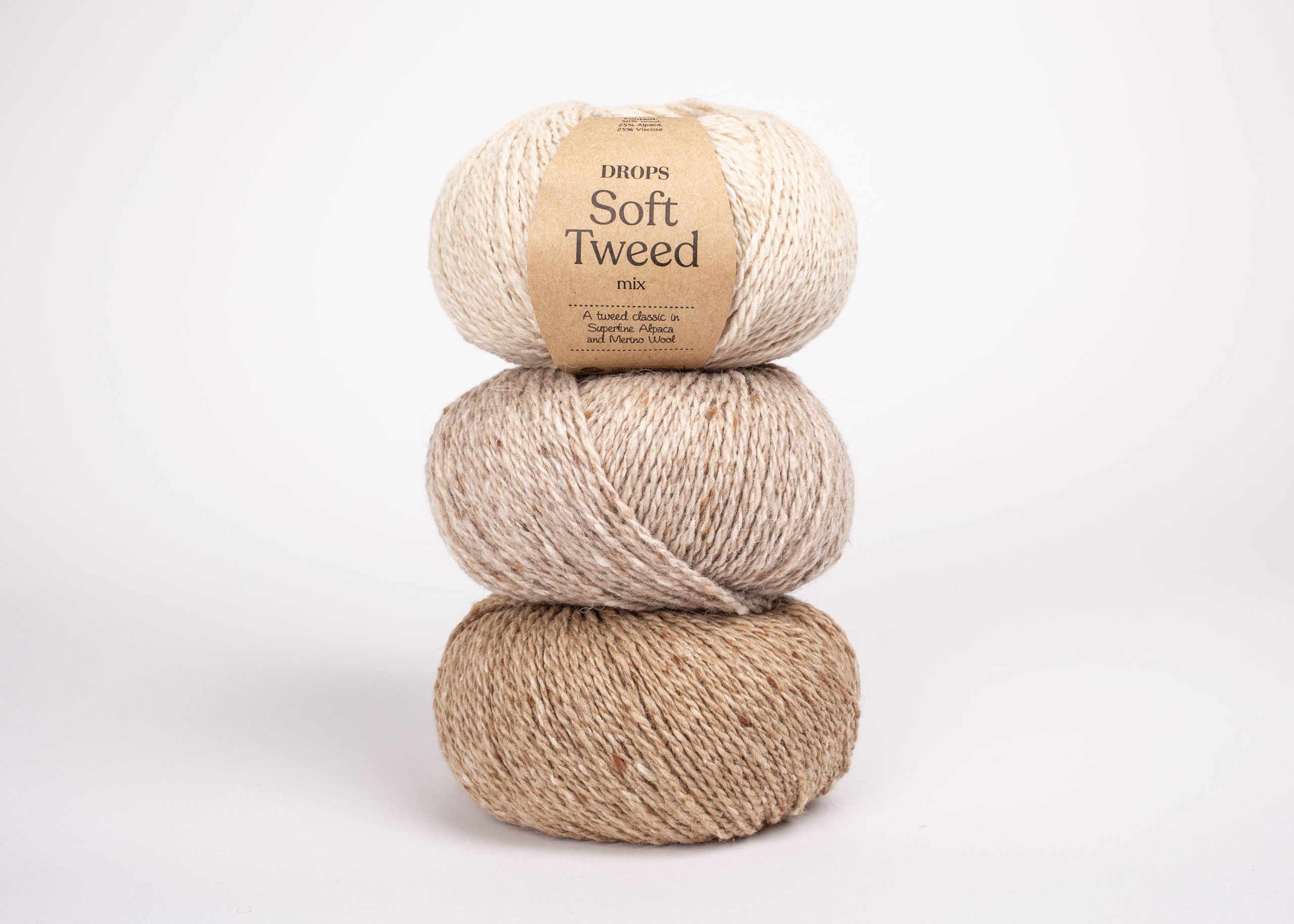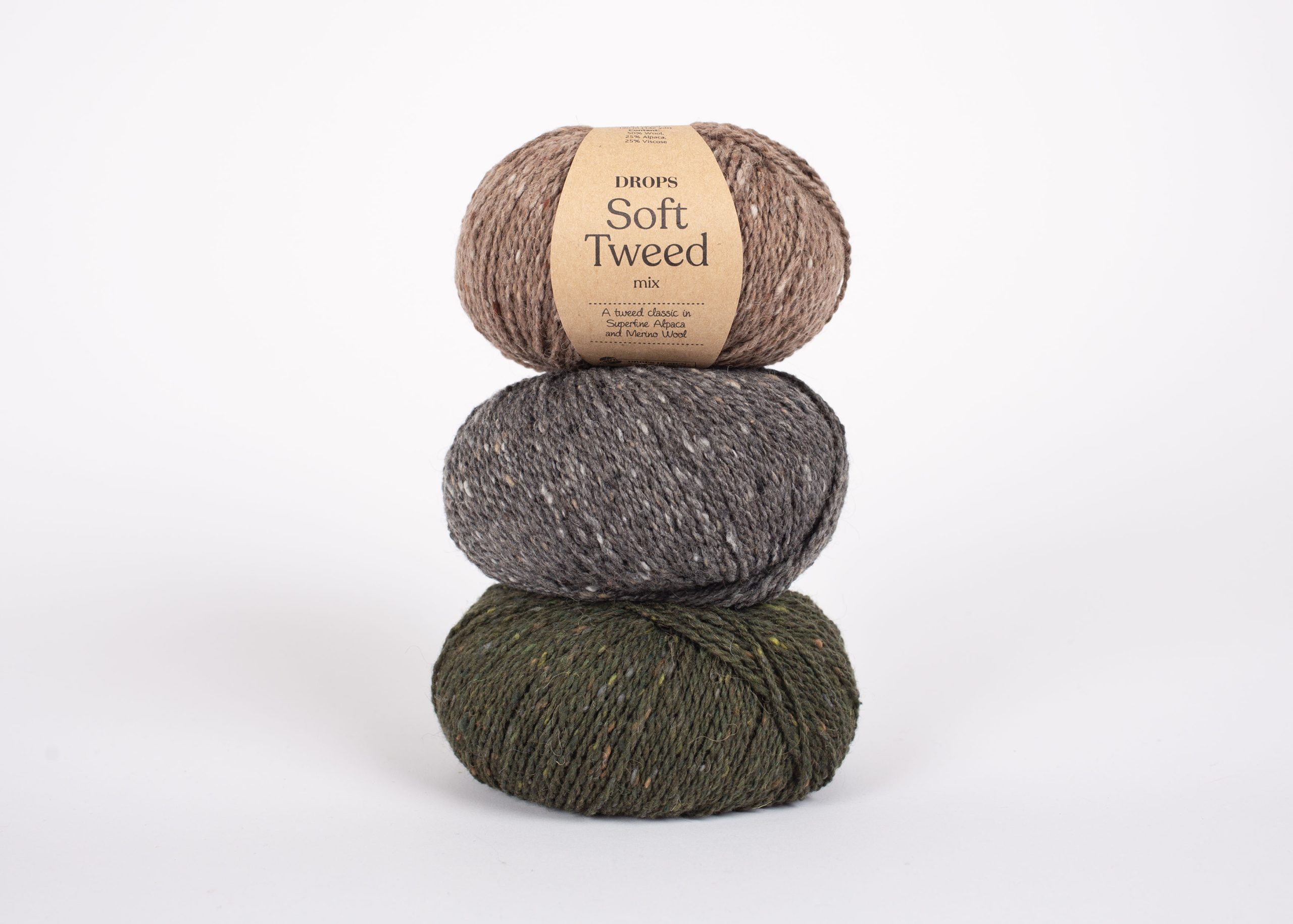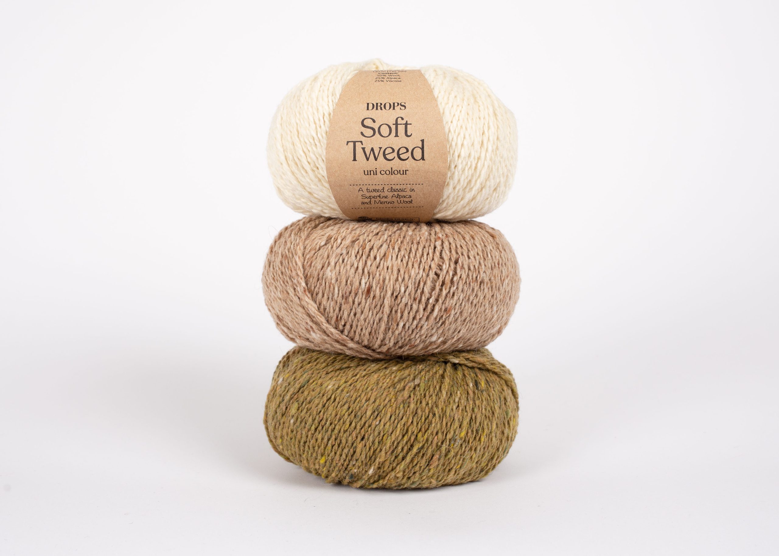 O DROPS Soft Tweed é um fio da marca Drops Design, e tal como o seu nome indica, um fio tweed suave, feito a partir de uma combinação de lã merino, alpaca superfine e viscose. A torção deste fio é feita com o cardar juntamente estas fibras com pequenos “botões de tweed” feltrados, que adicionam pontos de cor para definir o aspecto desta qualidade.